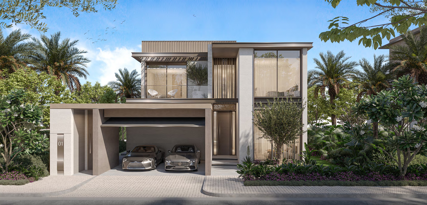 The 5-bedroom villas strike a beautiful balance between sophistication and warmth. Their light beige exteriors, accented with grey tones and brushed bronze screens, make a subtle yet powerful architectural statement.