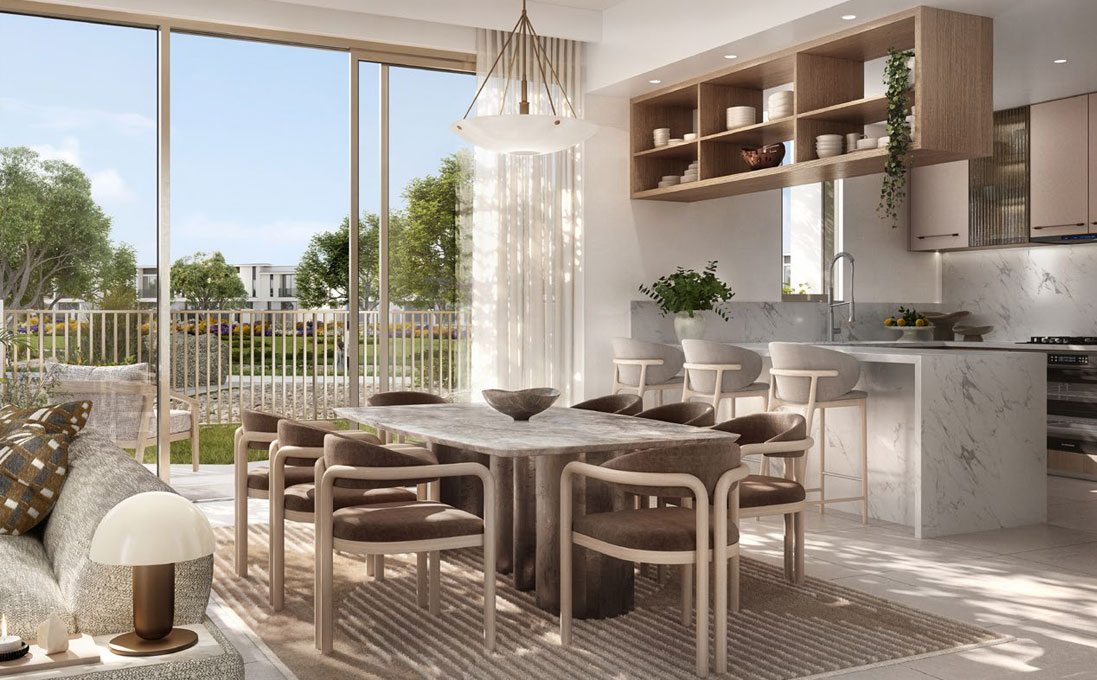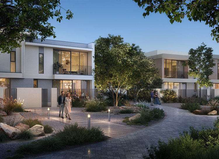 3 Bedroom townhouses start at 3,070,000 AED with built-up-areas of 2,400 sq ft and plots at 1,617 sq ft